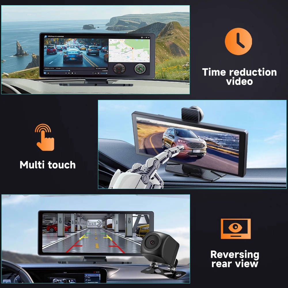 Upgrade your driving experience with this all-in-one 10.26″ smart rearview dash cam. Featuring wireless Apple CarPlay & Android Auto, 4K ultra-clear recording, Bluetooth connectivity, and GPS navigation, it brings safety, convenience, and entertainment to every trip.